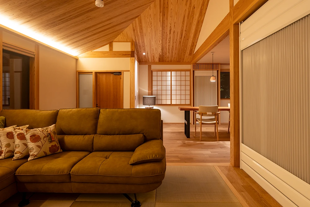 複数の小さな外部と連続した大らかな内部空間となることを心がけた。